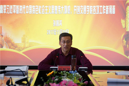在提到十九大報告明確新時代高等教育建設(shè)的指導(dǎo)方針和發(fā)展路徑時,孫智憑書記特別強調(diào),我們必須牢牢把握、始終堅持,并自覺貫徹落實到工作中去。為實現(xiàn)有特色高水平內(nèi)蒙古大學(xué)工科基地和自治區(qū)高層次交通人才培養(yǎng)基地的發(fā)展目標(biāo),下一步要切實把十九大精神的學(xué)習(xí)轉(zhuǎn)化為加強黨的建設(shè),推動學(xué)科發(fā)展的強大動力和生動實踐,與時俱進地推出新政策、構(gòu)建新機制、制定新舉措。進一步堅持“立足交通,依托行業(yè),面向社會,服務(wù)經(jīng)濟”的辦學(xué)理念,堅持內(nèi)涵發(fā)展,修訂完善好發(fā)展規(guī)劃,建立完善人才培養(yǎng)體系,抓好思想政治教育,著力培養(yǎng)擔(dān)當(dāng)民族復(fù)興大任的時代新人;主動適應(yīng)經(jīng)濟發(fā)展模式的轉(zhuǎn)變,主動融入產(chǎn)業(yè)轉(zhuǎn)型升級和創(chuàng)新驅(qū)動發(fā)展,結(jié)合自身優(yōu)勢,對原有專業(yè)進行升級和更新,促進多學(xué)科專業(yè)的交叉與整合,形成優(yōu)勢和特色的學(xué)科專業(yè),為行業(yè)發(fā)展提供更多更好的人才和智力支持;進一步加強同行業(yè)企業(yè)的聯(lián)系,利用好學(xué)院的科研服務(wù)平臺為交通行業(yè)一線提供更多更優(yōu)質(zhì)的技術(shù)服務(wù)。今后的工作我們將按照十九大決策部署,對照今年目標(biāo)任務(wù)集中攻堅,提早謀劃明年發(fā)展,確保今年工作收好尾、明年工作起好步,把學(xué)習(xí)貫徹十九大精神細化為具體工作任務(wù)。