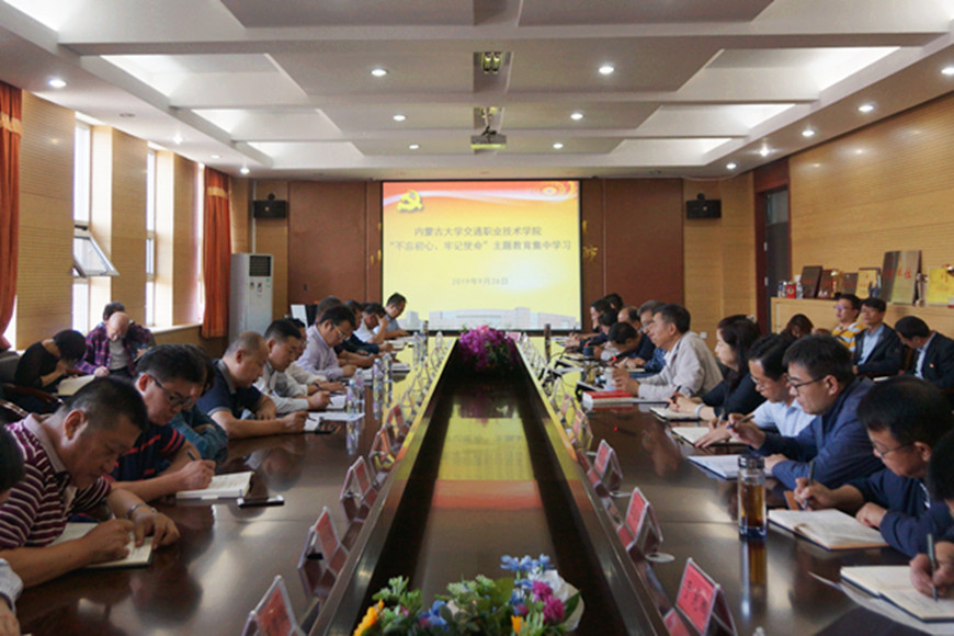 為了扎實推進“不忘初心、牢記使命”主題教育,努力實現(xiàn)黨員干部理論學習有收獲、思想政治受洗禮、干事創(chuàng)業(yè)敢擔當、為民服務解難題、清正廉潔作表率的目標,9月26日下午,學院黨委在交通樓A439會議室組織開展了集中學習。柴金義院長、董平常務副院長分別作了《牢記初心使命,培養(yǎng)優(yōu)秀人才》、《牢記初心使命,堅定責任擔當》主題發(fā)言。黨委書記孫智憑,黨委副書記、紀委書記白托婭,副院長武鈞等院領導出席。全院副處級以上干部50多人參加學習。