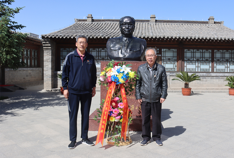 全體黨員走近革命先輩烏蘭夫雕像敬獻花籃,駐足凝視間,孫智憑書記和閆安教授一起走上前,仔細整理花籃緞帶。帶著對革命先輩的無限敬仰和崇高敬意,全體黨員向烏蘭夫同志雕像三鞠躬致敬。