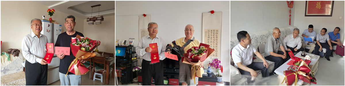 學(xué)院領(lǐng)導(dǎo)來到16位老黨員家中,為各位老黨員頒發(fā)了“光榮在黨50年”紀(jì)念章,并送上了慰問金。學(xué)院領(lǐng)導(dǎo)滿懷深情地說,在建黨100周年的特殊歷史時(shí)刻,黨中央首次頒發(fā)“光榮在黨50年”紀(jì)念章,這是以習(xí)近平同志為核心的黨中央對(duì)老黨員的親切關(guān)懷和尊崇厚愛,今天我們特意來向您們送上黨中央的關(guān)愛和溫暖,同時(shí)也表達(dá)我們對(duì)您們的崇敬之情。