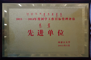 大會對2013-2014年度團(tuán)學(xué)工作目標(biāo)管理評估的優(yōu)秀學(xué)院及內(nèi)蒙古大學(xué)第四屆“十大杰出青年(團(tuán)體)”進(jìn)行了表彰。我院獲得了“內(nèi)蒙古大學(xué)2013-2014年度團(tuán)學(xué)工作優(yōu)秀學(xué)院”榮譽稱號。
