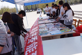 星星之火,可以燎原;點(diǎn)點(diǎn)知識(shí),充實(shí)人生。4月23日至26日,圖書館樓前人頭攢動(dòng),醒目的宣傳標(biāo)語、宣傳展板和圖書展臺(tái)時(shí)刻提醒著讀者多讀書、讀好書、會(huì)讀書,讓更多的師生參與閱讀,讓書香飄滿校園。