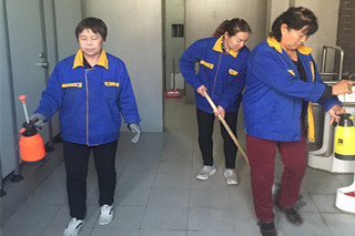 后勤人員對(duì)教學(xué)樓、交通樓內(nèi)走廊、樓梯進(jìn)行消毒