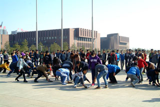 2014年11月4日中午,溫暖的陽光照射在內(nèi)蒙古大學(xué)南區(qū)廣場,交通學(xué)院學(xué)工處(團(tuán)委)學(xué)生聯(lián)合會的心理健康教育部正在組織學(xué)生參與一場愉悅身心的團(tuán)體游戲項目比拼。“加油!”“加油!”吶喊助威聲不絕于耳。