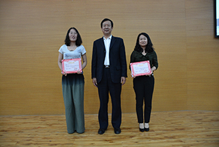 孫恒為二等獎(jiǎng)獲得者閆琴、劉振宇頒獎(jiǎng)