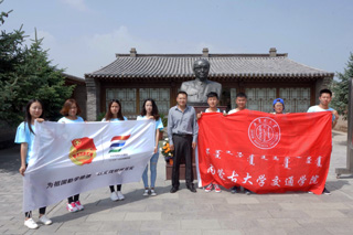 參加“三下鄉(xiāng)”社會(huì)實(shí)踐活動(dòng)的學(xué)院大學(xué)生志愿者在烏蘭夫故居前合影 | |