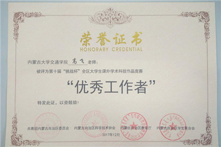 近日,第十屆“挑戰(zhàn)杯”全區(qū)大學生課外學術(shù)科技作品競賽成績揭曉。我院上報的作品《基于交通大數(shù)據(jù)預測的路徑誘導系統(tǒng)的開發(fā)》(學生作者:張重慶、劉宇杰、梁瑞田,指導教師:李曉娟、霍月英)獲得科技發(fā)明制作A類三等獎;作品《呼和浩特市、包頭市道路汽車行駛工況的研究》(學生作者:趙亞瓊,指導教師:姚延鋼、楊曉勤)獲得自然科學類學術(shù)論文三等獎。我院團委書記高飛被第十屆“挑戰(zhàn)杯”全區(qū)大學生課外學術(shù)科技作品競賽組委會評為優(yōu)秀工作者。