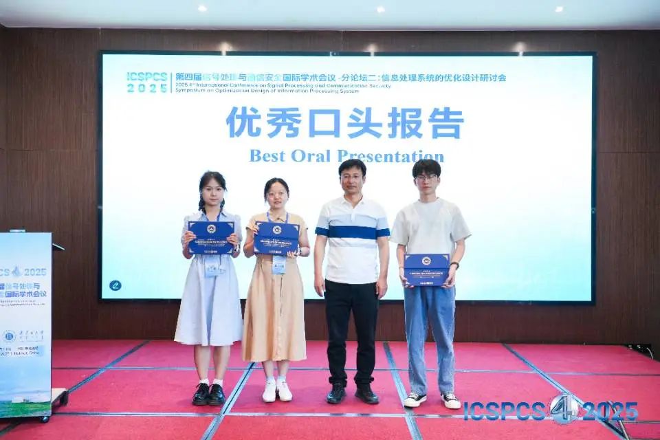 組委會(huì)對(duì)現(xiàn)場(chǎng)口頭報(bào)告表現(xiàn)優(yōu)異的學(xué)者頒發(fā)【優(yōu)秀口頭報(bào)告獎(jiǎng)】,通過(guò)表彰優(yōu)秀的科研人才與科研成果,希望能夠激勵(lì)更多學(xué)者在領(lǐng)域前沿不斷探索。至此,第四屆信號(hào)處理與通信安全國(guó)際學(xué)術(shù)會(huì)議(ICSPCS 2025)在專(zhuān)家學(xué)者熱烈討論的氛圍下圓滿落幕!